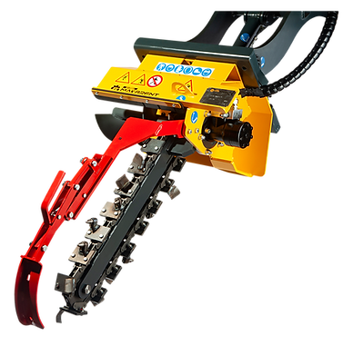 Attrezzatura idraulica a catena per mini escavatori e pale compatte. Profondità di scavo massima 800 mm.