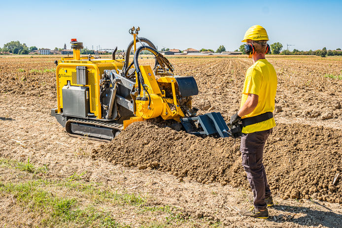 Scavatrice a catena per macchina multifunzione Mak 75 Evo.1 per lo scavo su superfici vegetali e morbide, per la posa di sottoservizi quali reti idriche, gasdotti, telecomunicazioni.